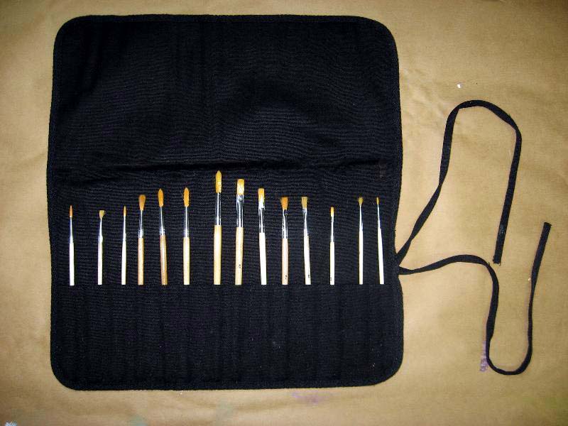 Cheap Set of Assorted Brushes in a Roll-up Canvas