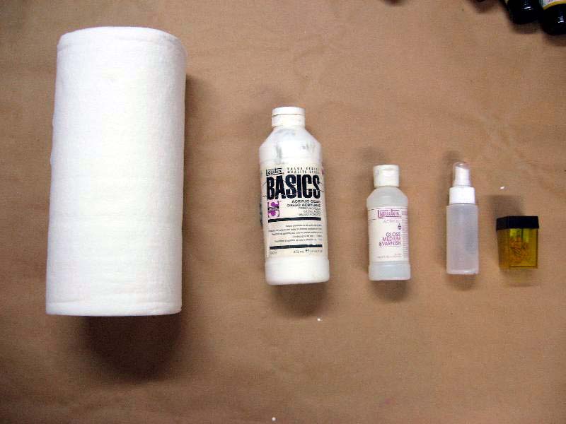 ( Viva paper towels, Liquitex "Basics" Gesso, Clear Gloss medium,