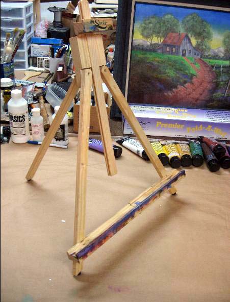 Hobby Lobby also has a table top easel that's around $17.00 that is better than his one.