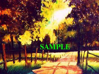 Country Road -The sunlight beems trrough the tall oak trees with the annual changing colors of the leaves on a quiet,lazy fall day and there's a crispness in the air as a well traveled country road beckons us to come take a walk or a leasurly ride. Medium:Watercolor Image Size: 16"x21" Original: $600 / Matted & Framed Size: 24 1/4" x 29"